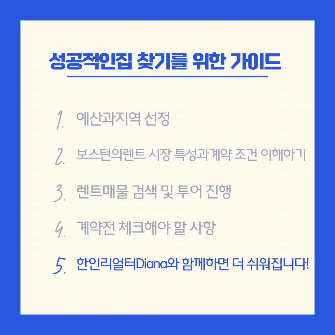 보스턴에서 렌트를 구하는방법 : 성공적인 집 찾기를 위한 가이드